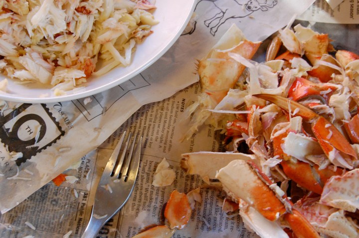 I bought one at the Pike Place Market, which is probably not that best option available here, but it was so perfect and Seattle-esque. I was busy (working!) at night, so I was thinking breakfast. And by breakfast I mean crab cake eggs benedict. We had the fish(monger?)guy scoop out the yucky bits, but we cracked into it ourselves. Which would have been easier with some proper gear, but we had some time to kill so we went at it with our hands. Actually my friend Scott, who traveled up with us from San Francisco to help up get settled in, did the cracking. He now tells me that a crab cracker is highly recommended.