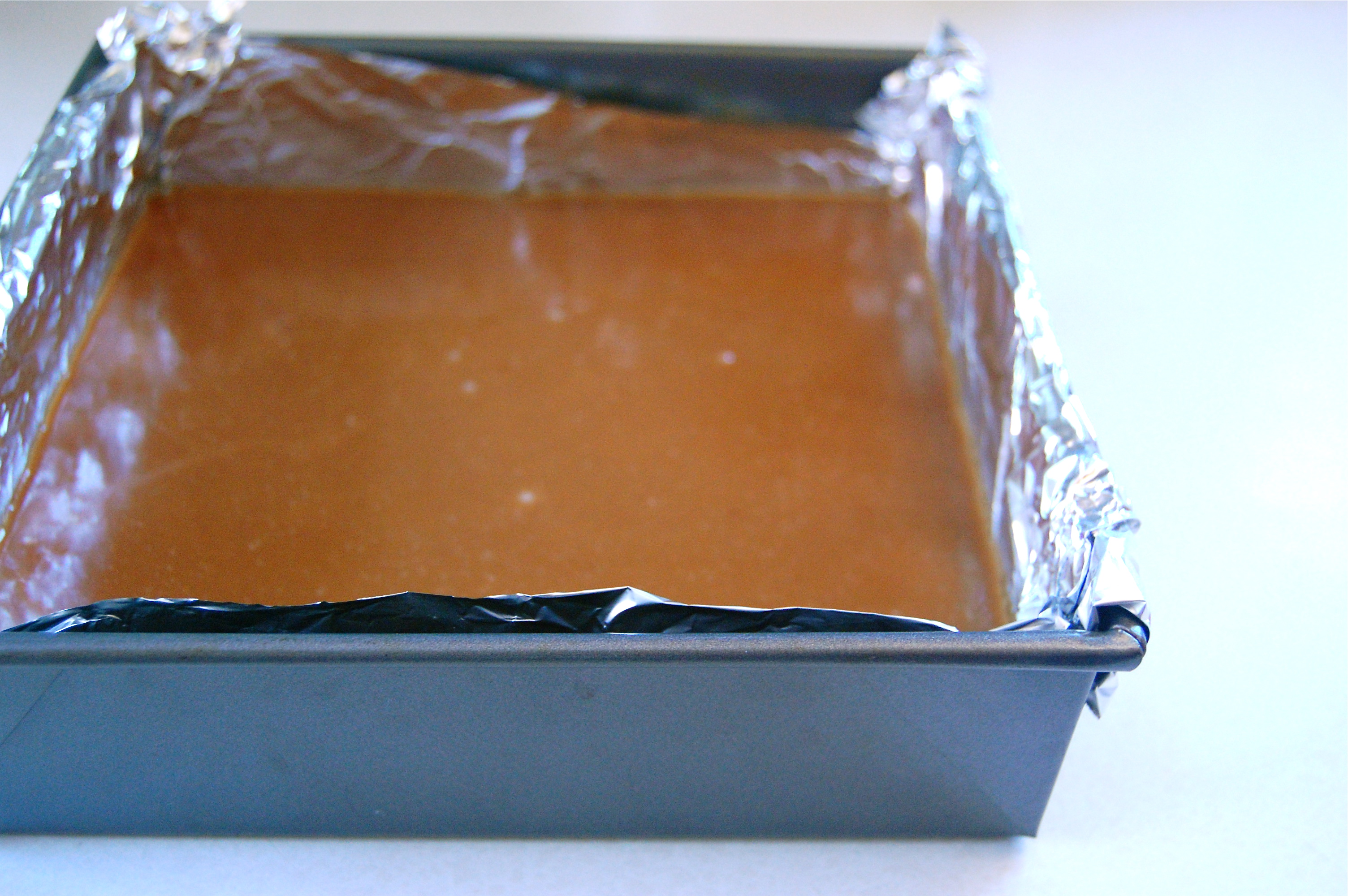 Once it was nice and dark (and 300 degrees) I poured the mixture into a foil lined baking pan. I let it sit overnight to cool.