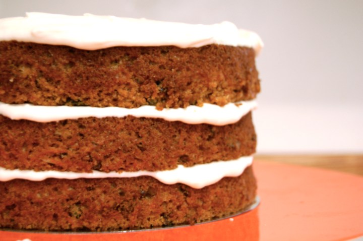 – Remove the cakes from the oven and let cool in the pans for about 30 minutes and then turn them out onto a cake rack to cool completely.