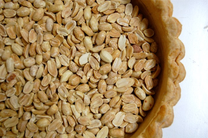 First I pre-baked a shell. I tossed some dry roasted peanuts inside.