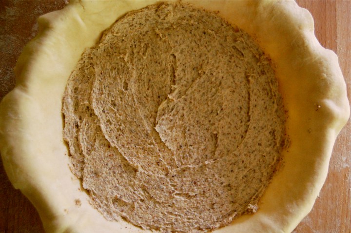 That gets pressed into a pie pan, really tightly to prevent leaks.