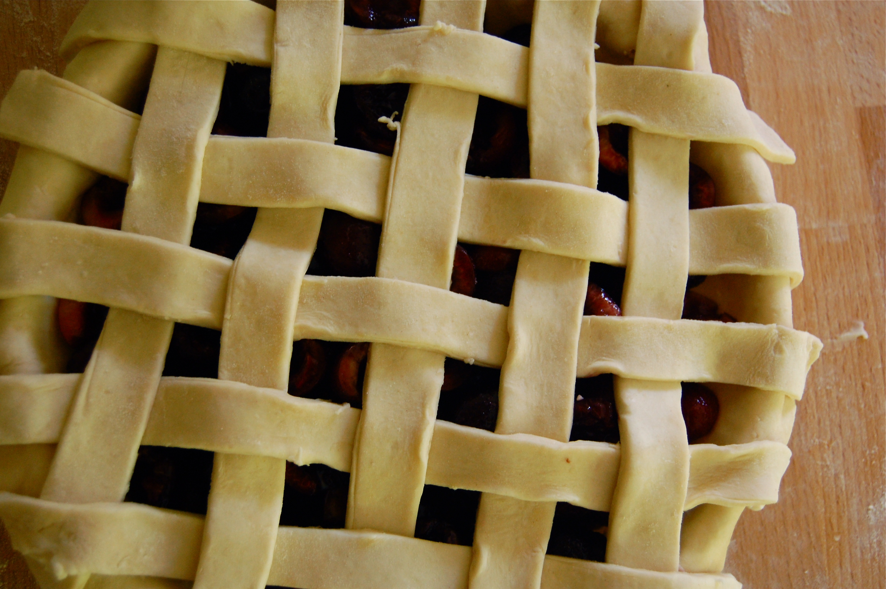 As with any pie, I started with my dough. I wanted to make a lattice top, so I decided to use the smear technique (more detailed instruction here) for my pâte brisée dough. This dough gives plenty of flake without all the puffing up of a laminated dough.