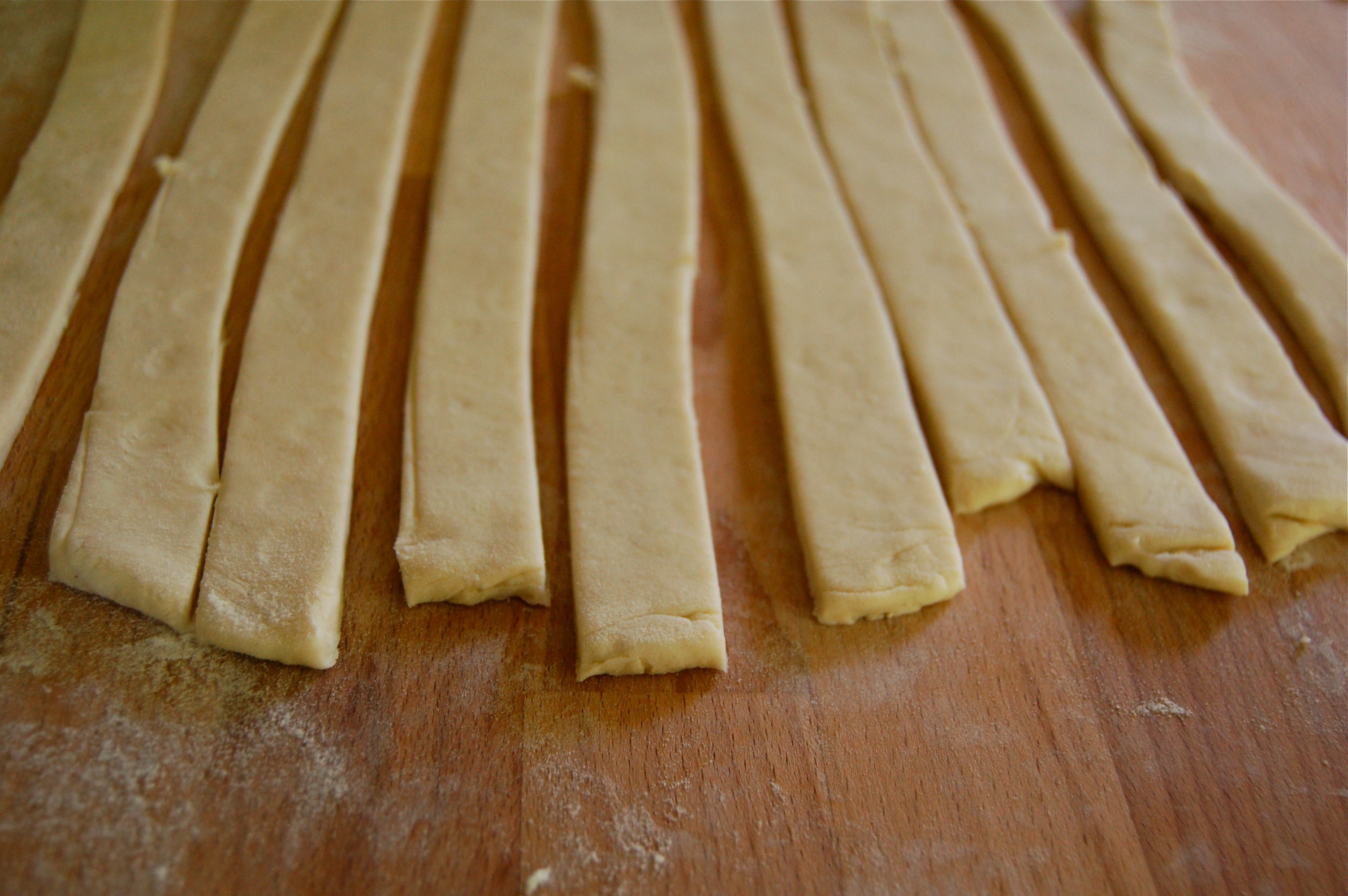 – Mix dry ingredients in a bowl. Dump onto pastry board.