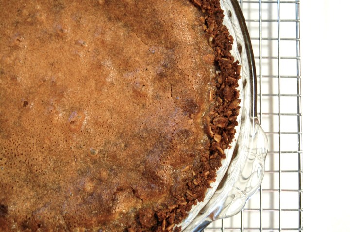 And Oh. My. It is insane. Kind of like pecan pie, without those pesky pecans. Wrapped in a crunchy oatmeal cookie. I will admit now that I made two. Friends came over last night and helped me devour the first pie. The second, well I’m regretting that one. It’s just too much crack for this little one. I suspect some staff at Delancey will be finishing it off if John doesn’t read this and hide it before I get there.