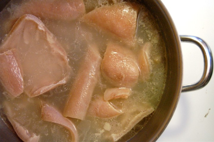 I put your skin in a pot of water and boiled you for 1 1/2 hours, long enough to soften up the fat left clinging to you.