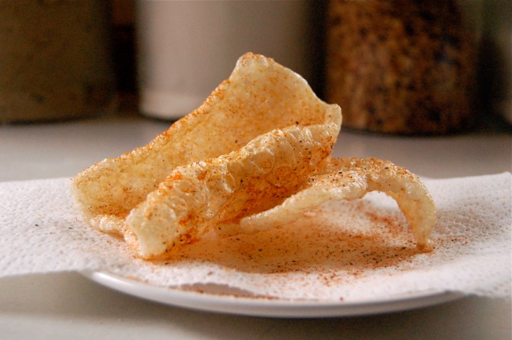 I tossed you in a spice mix I had prepared earlier. And you were glorious. Light, fluffy, melt in my mouth glorious. You were a lot of work, but Pork skin, you were worth it. Thank you.