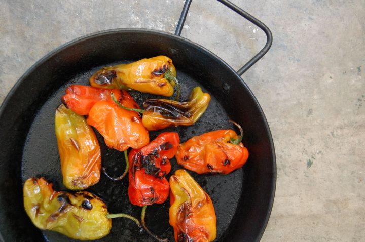 – Toss the chiles in enough olive oil to coat them. Then roast them in a broiler, or grill them if you can. The goal is to get a nice char on them.